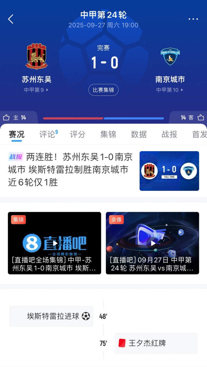 2025年9月27日,中国足球甲级联赛第二十四轮场序第190场,苏州东吴足球俱乐军队与南京城市足球俱乐军队的比赛在苏州市体育中心畅通场举行。