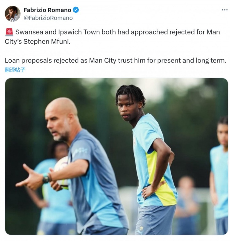 罗马诺显露,斯旺西、伊普斯维奇就租赁姆富尼与曼城询查,但两家俱乐部的租赁建议王人被曼城间隔,曼城对姆富尼当今和明天的发展王人充满信心。