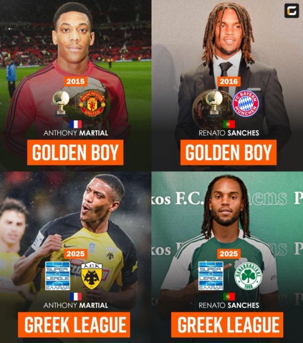 2015年金童奖马夏尔,效劳于希腊球队雅典AEK; 2016年金童奖桑谢斯,现效劳于希腊球队帕纳辛奈科斯......查看更多