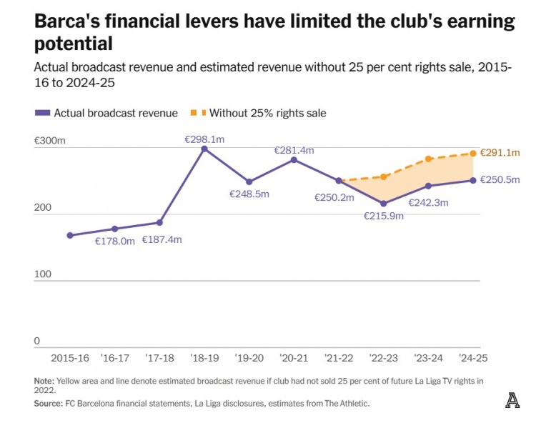 现款注入匡助对消了后一财年近2亿欧元的运营现款赤字。巴萨领有未知成本的回购权,可在25年期限前提早赎回这些权利。但与此同期,出售意味着他们毁灭了可不雅的年度收入。