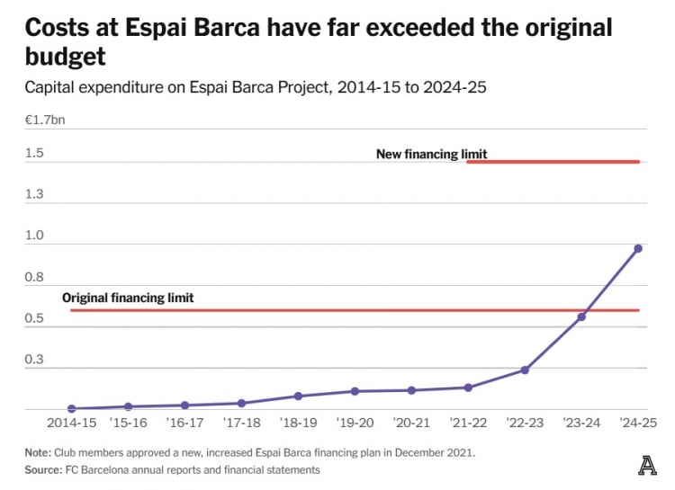 新批准的预算上限高达15亿欧元,是原预算的1.5倍。诺坎普工程用度飙升至9亿欧元,远超原定的4.2亿。新巴乌布劳格拉纳馆及邻近尺度成本从9000万欧元涨至4.2亿。甚而区域计算拨款也从2000万欧元增至1亿欧元,幅度惊东说念主。