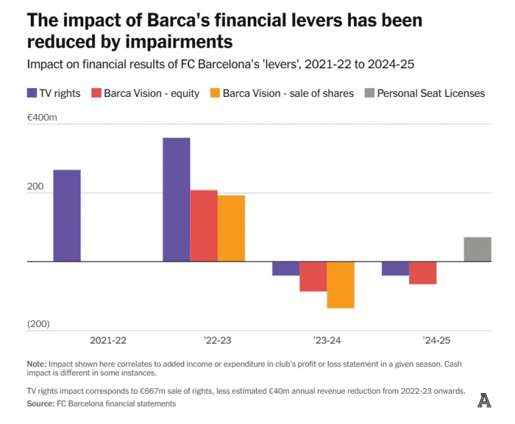 这些杠杆组成巴萨财务图景的关节部分,即便部分操作早在数年前就已运行。它们对诺坎普的财务产生了久了影响,正如连续进行的翻修工程,让球队暂时告别了这座传说主场。