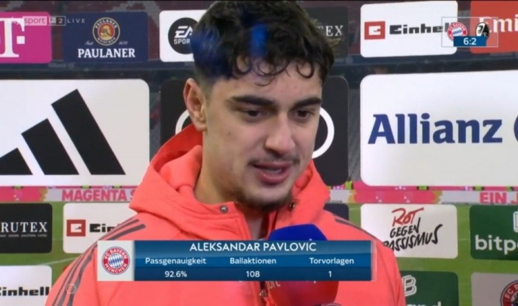 11月23日讯 拜仁在本轮德甲6-2逆转弗赖堡,中场帕夫洛维奇在赛后袭取了采访。
