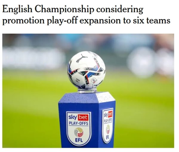 6队争1个限额!TA:英冠考虑增设一轮升级附加赛 参赛队扩军至6支