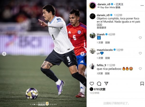 9月11日讯 世初赛南好意思区比赛,乌拉圭3-0秘鲁,乌拉圭0-0智利,确保得回2026年寰宇杯参赛经验。 努涅斯在社媒写谈:“规划收场,该专注寰宇杯了。莫得什么能比得上我的国度。” “咱们还有好多需要神勇和提升的地点,寰宇杯是规划👊🏼💙”......查看更多