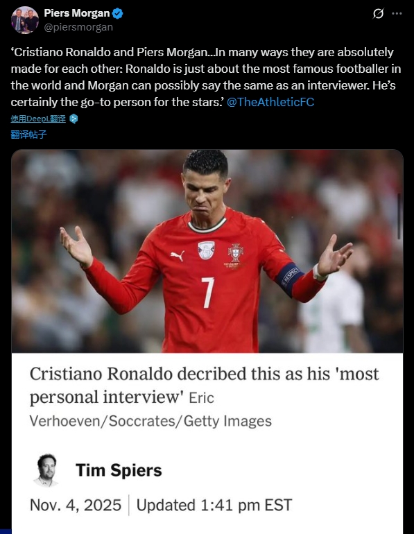 摩根援用报说念:C罗和摩根是舍己为人,天下最著名球星和采访者
