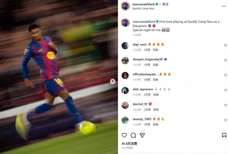 拉什福德社媒:行为巴萨球员在诺坎普首秀,对我而言是绝顶的整夜
