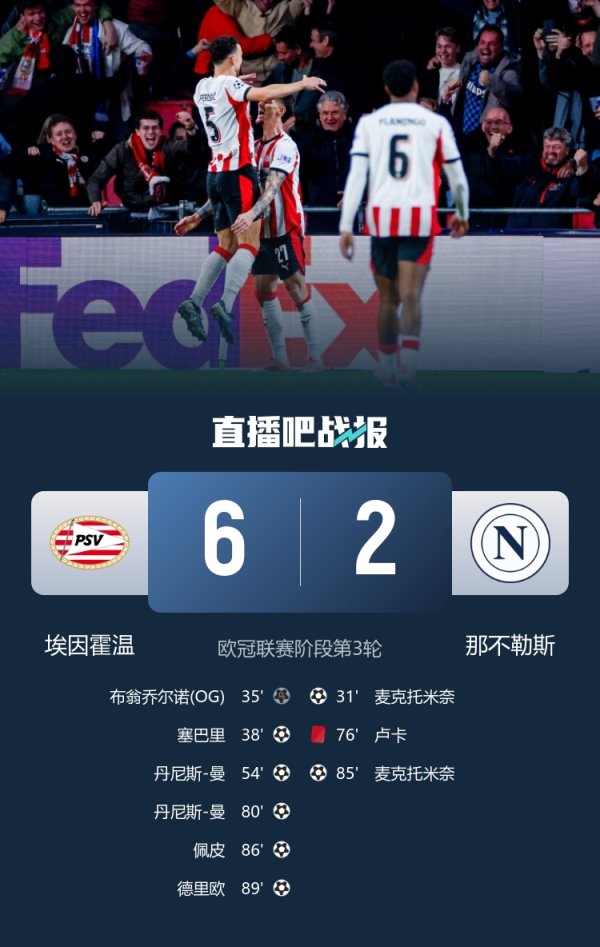 埃因霍温队长:这是个秘籍的夜晚,咱们本不错打进那不勒斯8个球