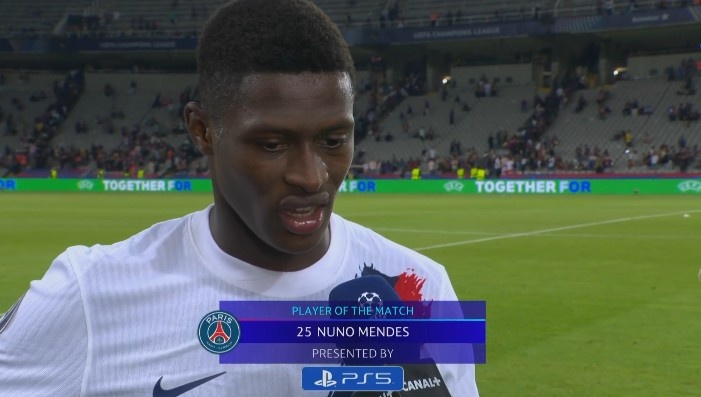 10月2日讯 欧冠联赛阶段第二轮,巴黎客场2-1逆转绝杀巴萨。赛后,门德斯接管采访。