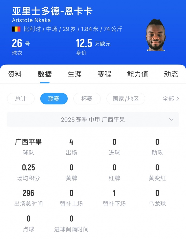 本年2月,广西平果官宣尼卡卡加盟球队,尔后,他为球队出战4场中甲比赛,并在4月13日对阵深圳后生东说念主的比赛中于第22分钟受伤下场。