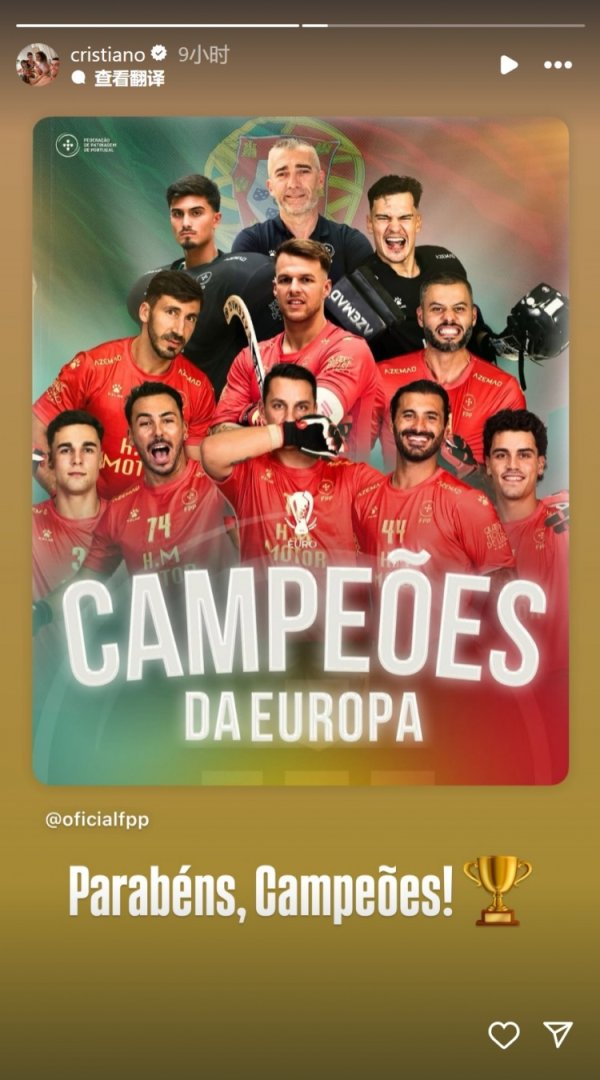 葡萄牙队夺得轮滑曲棍球欧洲冠军,C罗社媒转发海报道喜