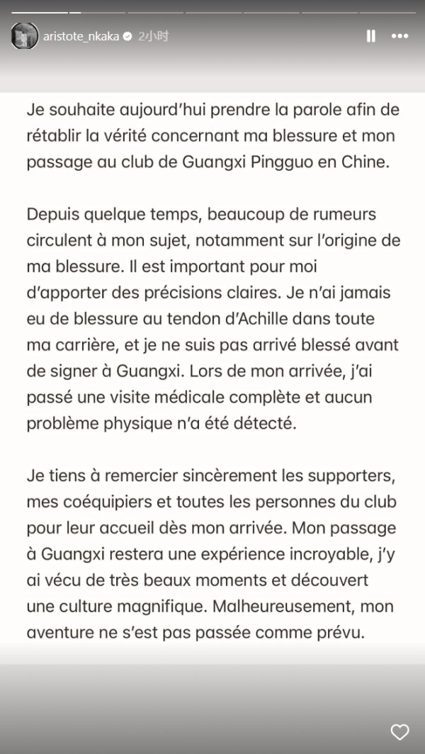 08月27日讯 广西平果外助尼卡卡在个东说念主酬酢媒体发文称,由于广西平果足球俱乐部的相关诊疗,导致其跟腱伤势恶化并最终断裂。 尼卡卡社媒全文: 我念念借此契机剖释对于我的伤病以及我在中国广西平果服从时辰的事实真相。 最近几周出现了好多对于我的传言,尤其是对于我伤病根源的说法。我以为有必要说明实质情况:在我的通盘劳动生计中,从未遇到过跟腱损害,与广西队签约时也并非带伤抵达。抵达俱乐部后我接收了全面体检,那时并未检出任何健康问题。 我真心感谢球迷、队友以及俱乐部合座成员从我抵达......查看更多
