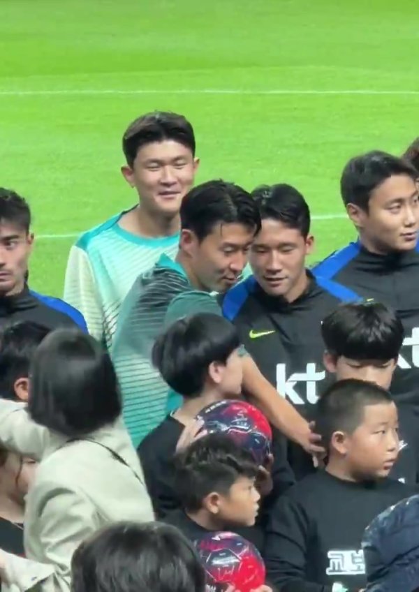 可儿😋对阵巴拉圭合影步调,孙兴慜与SONNY发型的小球迷打呼唤