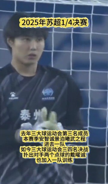 现在,亚泰队门将吴亚轲受伤,王智峰红牌停赛,除了安智诚和邹德海,18岁的年青门将戴曜城也加入亚泰一线队历练。此前,戴曜城代表泰州队设置“苏超”比赛。