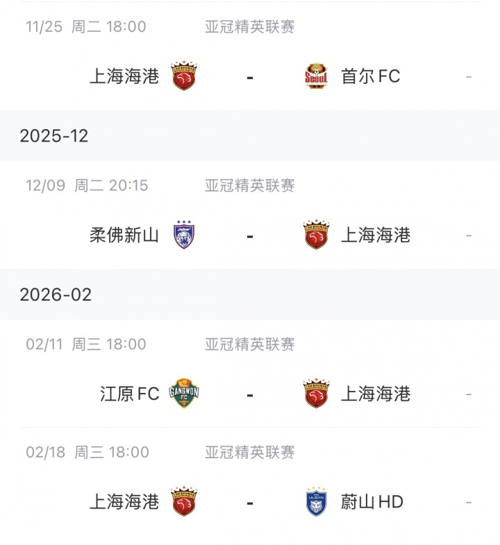 中超结果,亚冠开启!海港蓉城申花暂分列亚冠精英倒数1、2、3名