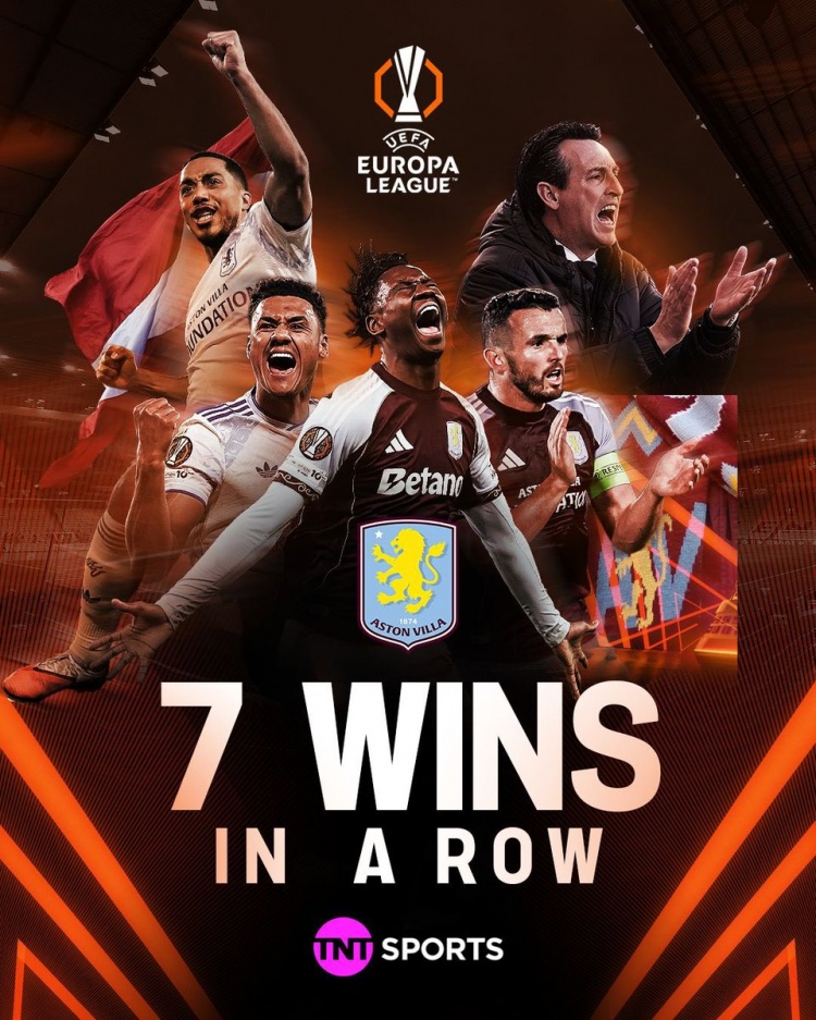 据TNT统计,维拉在欧联杯中取得7连胜,这是切尔西2013年到2018年之后,英格兰战队在该对决的最长连胜纪录。