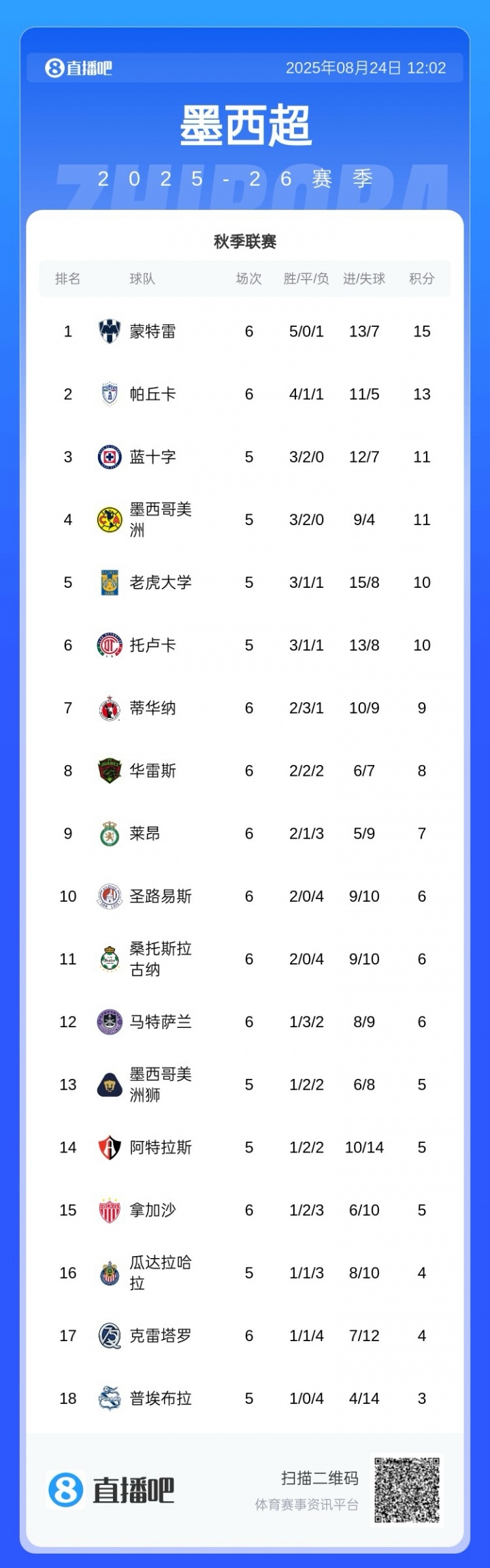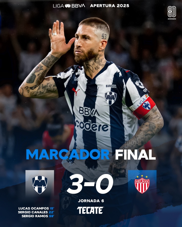 08月24日讯 墨西超秋季联赛第6轮,蒙特雷3-0打败拿加沙,39岁拉莫斯点射破门得益新赛季首球,匡助球队5连胜登顶。