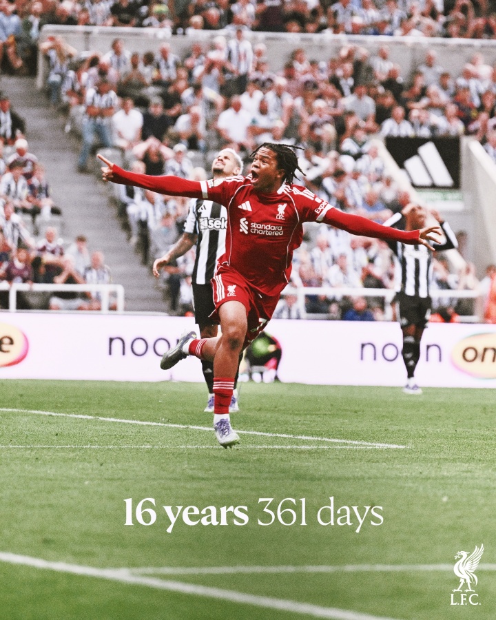 勇士出少年!16岁361天,恩古莫哈成为利物浦队史最年青进球者