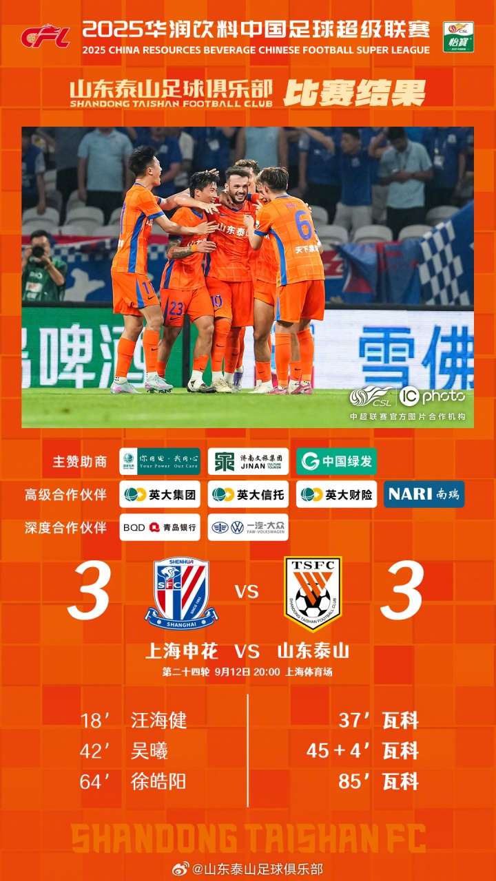 酷暑的天气莫得不平泰山队前进的阵势!天然咱们莫得在上海带走到手,然而这场比赛充分展示了什么是泰山队精神!感谢所有来到客场为球队加油捧场的球迷们。咱们会连接领受着永不废弃的气派,靠近将来的每一场比赛!