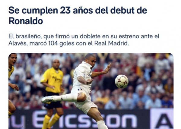 致意别传!皇马官网撰文驰念大罗首秀23周年:历史最好先锋之一