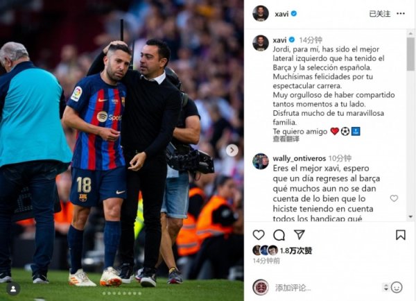 哈维请安阿尔巴:你在我心中是巴萨和西班牙队历史最好左后卫