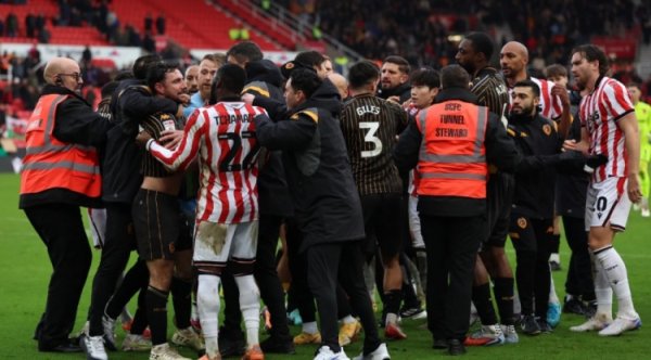 太阳报:赫尔城与斯托克城赛后两边爆发冲破,多名球员被黄牌警戒